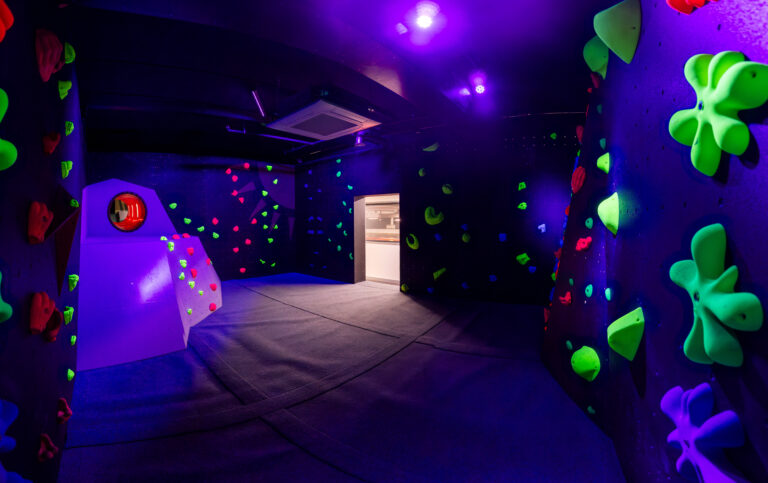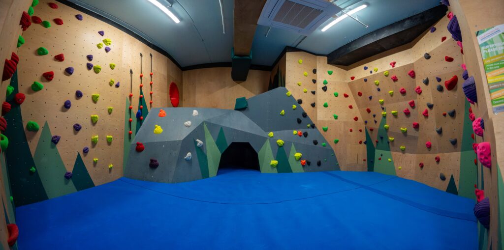 Blast off into adventure in our space-themed kids’ bouldering area! Featuring UV glowing holds, fun exploratory climbs, and an exciting slide, this area is designed to spark imagination and inspire young climbers. It’s a cosmic playground full of fun, challenges, and endless exploration! Kids can also enjoy crawling through a feature tunnel over the stairs, leading to our other uniquely themed Cenote room.